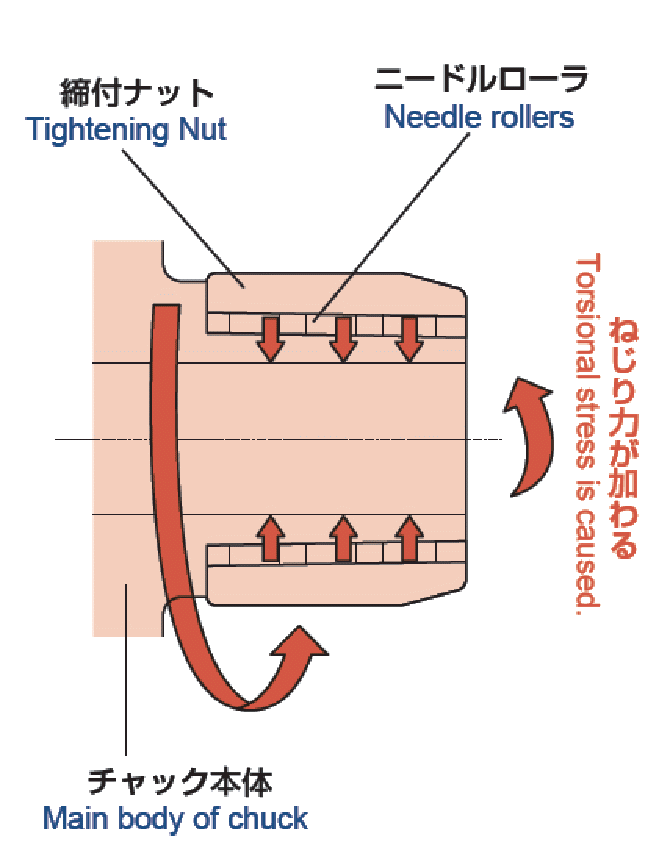 独自の非回転クランプ構造により、コレットチャックのようなクランプ時の